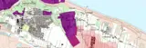 Energizone Hanstholm – rød skravering sydøst for Hanstholm by og havn, er en del af et nyt udspil fra Thisted Kommune, der vil udpege op mod seks energizoner i Thy, hvor det er muligt at koncentrere større energianlæg i strategisk placering til eksisterende erhverv og infrastruktur. Kort: Thisted Kommune.
